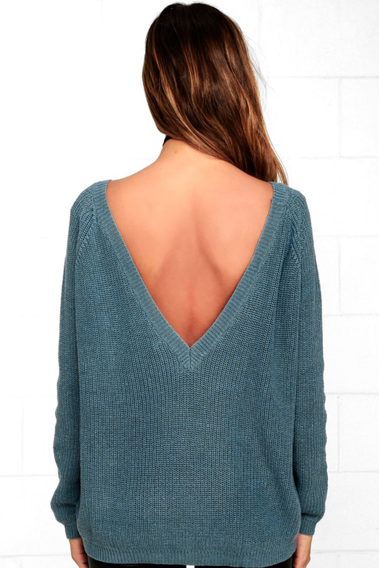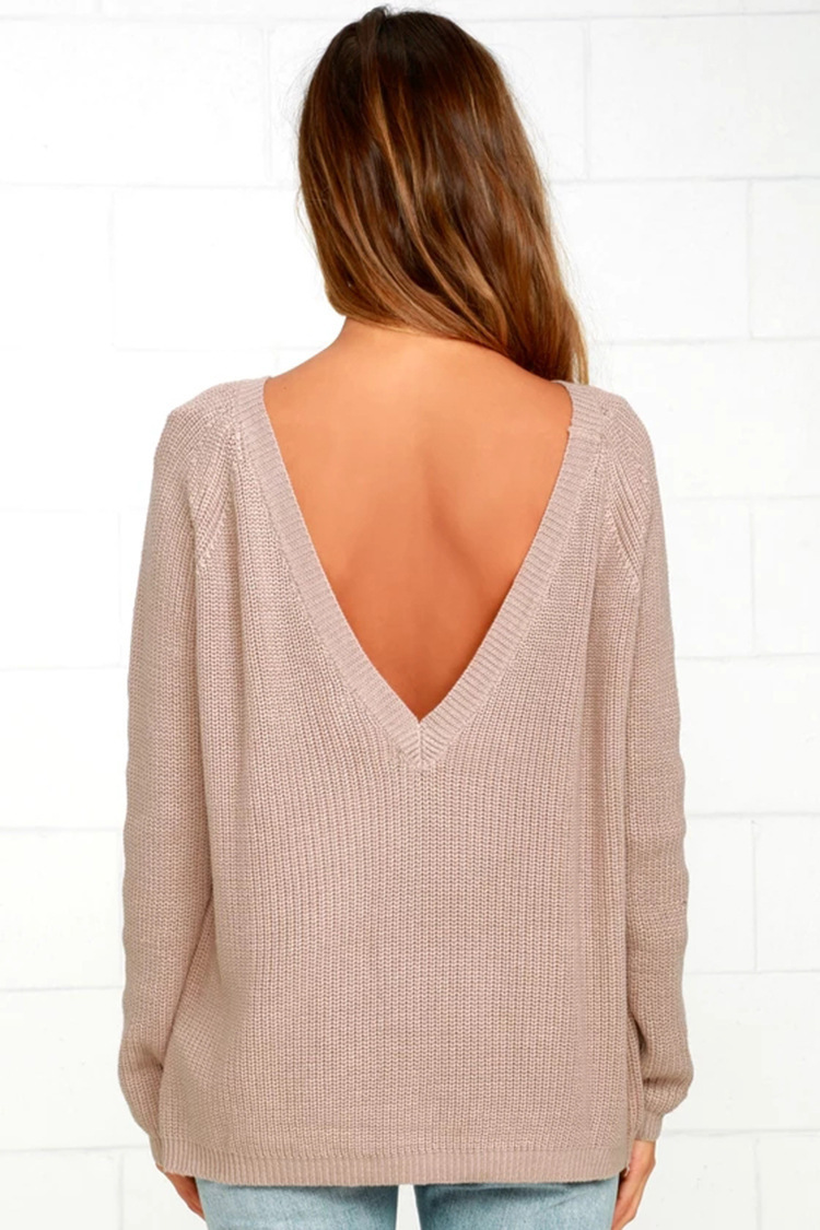 Womens Backless Knitted Sweater With A Deep V-Neck In The Back
