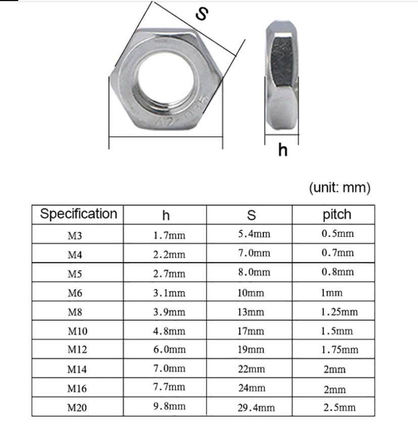 304 Stainless Steel Fine ThreadThin Nut Hexagonal Fine Thread Nut