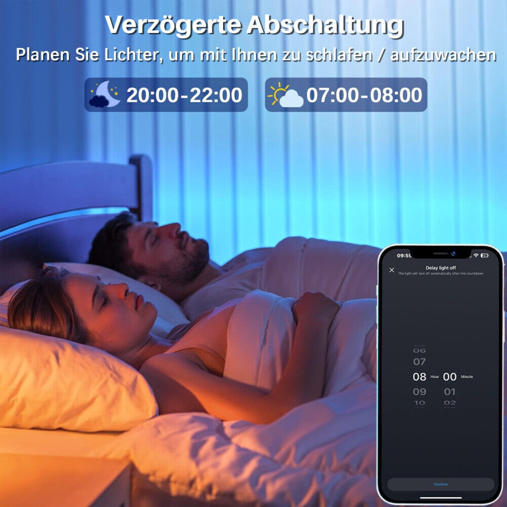 Nach erfolgreicher Kopplung der Lichtleiste über WiFi (Nur 2.4G WiFi, 5G WiFi Nicht unterstützt), können Sie die App "Smart Life" oder die Stimme (Amazon Alexa / Google Home Assistant) verwenden, um die Farbe, die Helligkeit und die Geschwindigkeit des Lichtleistenwechsels zu steuern, die gewünschte Atmosphäre zu schaffen (Hinweis: Unterstützt nicht den Effekt des segmentierten Farbwechsels des Lauflichts). Mit 16 Millionen Farben zur Auswahl, es wirklich befreit Ihre Hände und bereichert Ihr Leben.