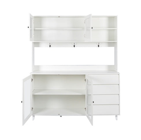 63 W Large Kitchen Hutch Cabinet, Freestanding Pantry Cabinets Storage Kitchen Cupboard With 4 Doors, 4 Drawers & Microwave Shelf, White
