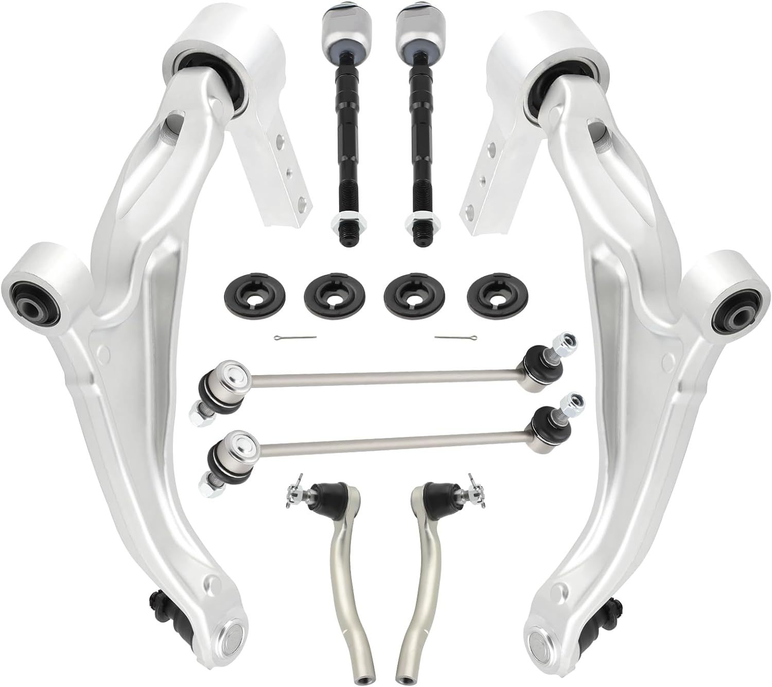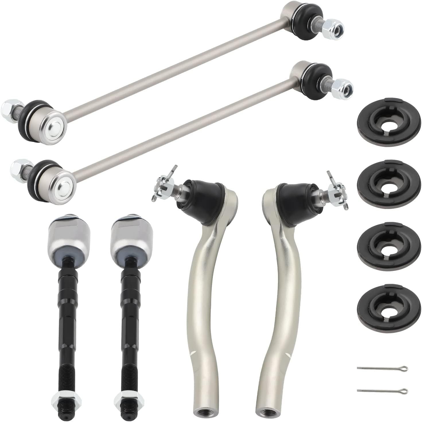 Package Contents: 2 x Front Lower Control Arm K621550 K621551, 2 x Front Stabilizer Links K750124, 2 x Inner Tie Rods EV800712, 2 x Outer Tie Rods ES800825 ES800824