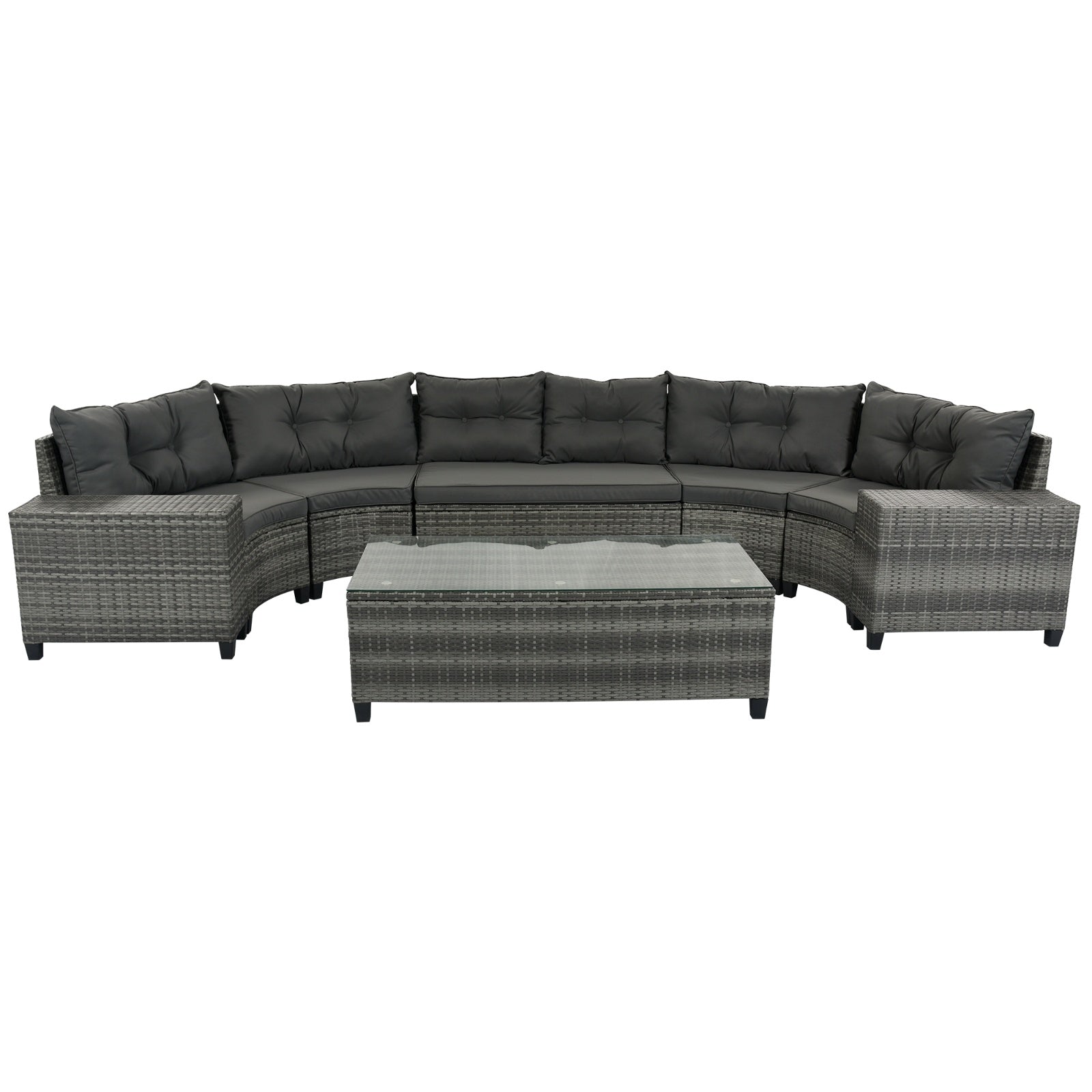 8-Pc Outdoor Wicker Round Sofa Set, Half-Moon All-Weather Curved Sectional