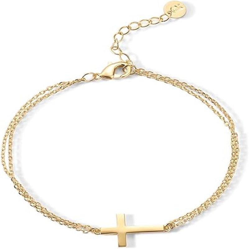 Cross Pendant Double-layer Bracelet Personality Ball Bead Chain Love Cut Black