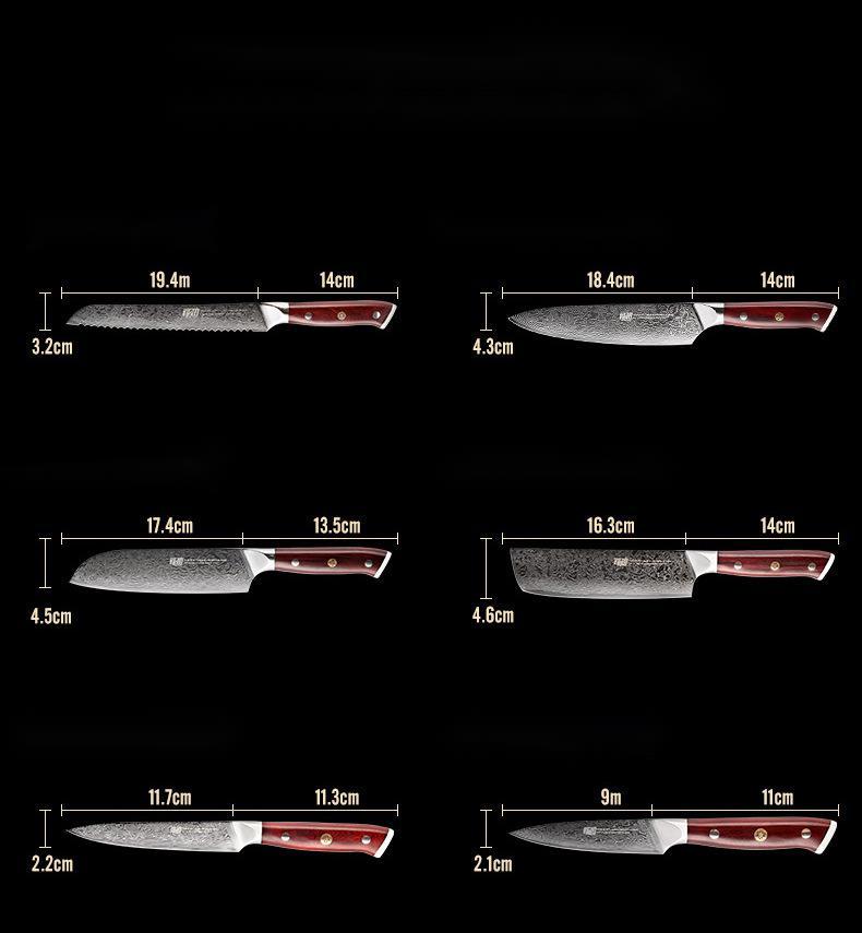 Product information: Product Category: Kitchen Knife Set Material: Imported AUS10 Damascus steel Product Name: Damascus six-piece knife set with red sandalwood... En savoir plus