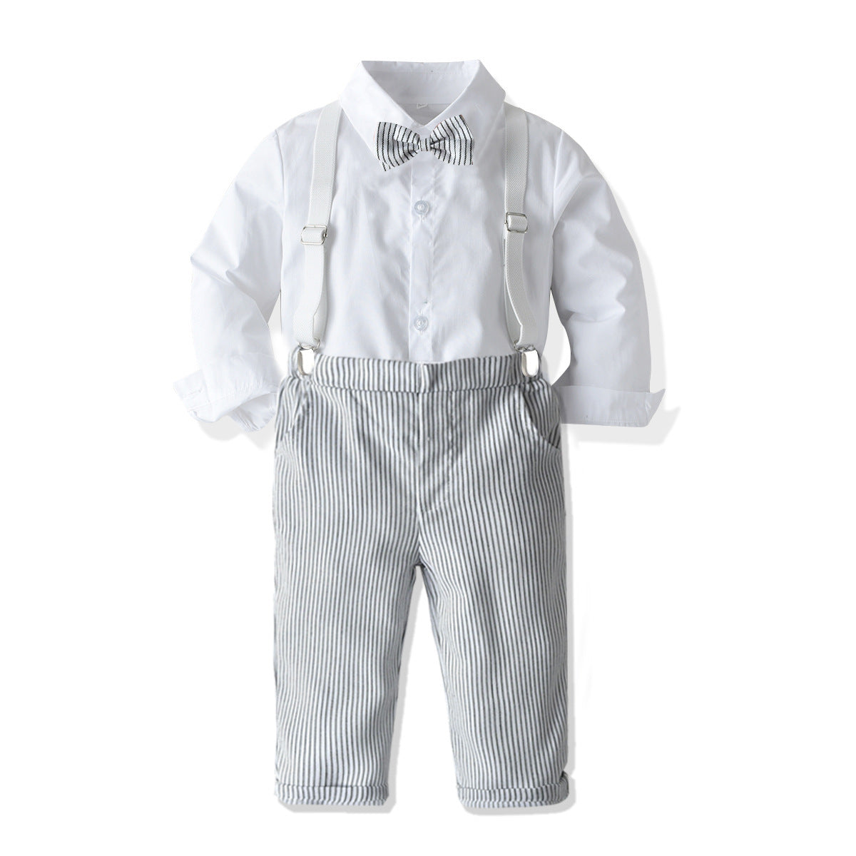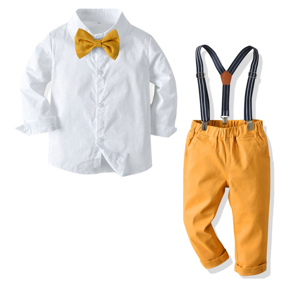 Color; 1 color: white bow tie white shirt + white overalls, 8 color bow tie white shirt + gray overalls, 3 color bow tie + white shirt + overall striped pants, 4 color bow tie + blue shirt + overall striped pants, 5 Color blue shirt +Bow Tie+Overalls, 6-color shirt and tie four-piece suit, 7-color red tie, blue shirt, burgundy overalls, 8-color long-sleeved blue shirt, four-piece suit, 9-color white shirt four-piece suit