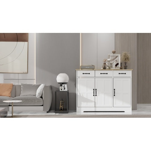 Farmhouse buffet cabinet storage sideboard with 3 drawers and 3 doors for dining room, living room, kitchen cupboards - white
