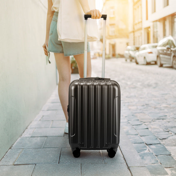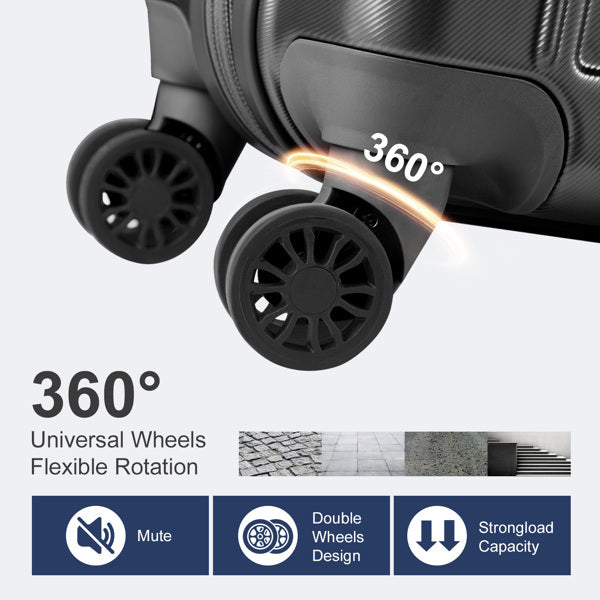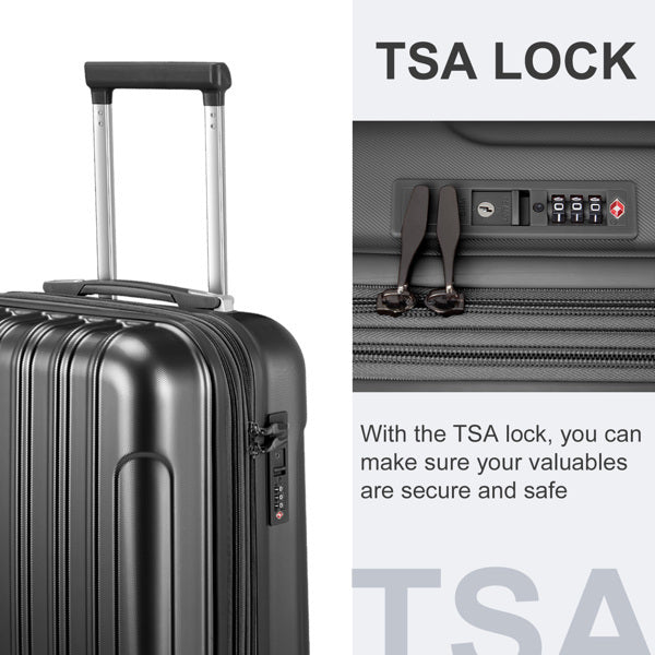 FCH Vertical Pattern 2-Piece Set 20 Inch Expandable With 14 Inch Suitcase, ABS, PC Trolley Case, 14in 20in Silent Wheels, Inner Iron And Outer Aluminum Tie Rod, Classic Color- Black