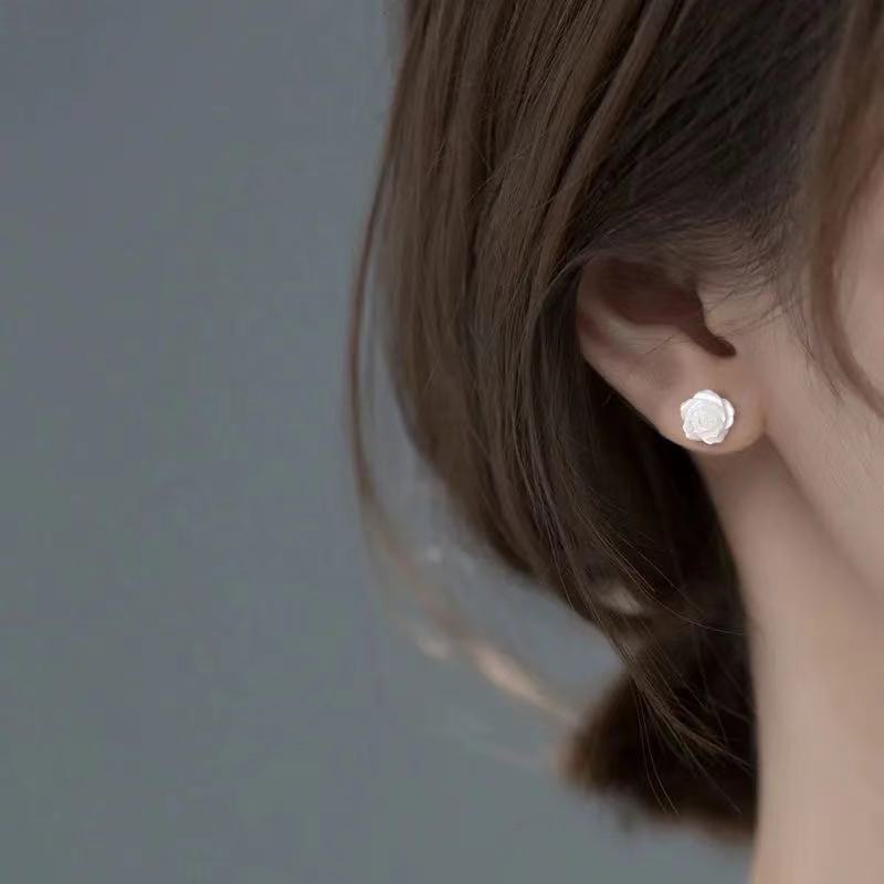 H Alphabet Letter Earrings Women's Silver Needle Small Delicate Earrings