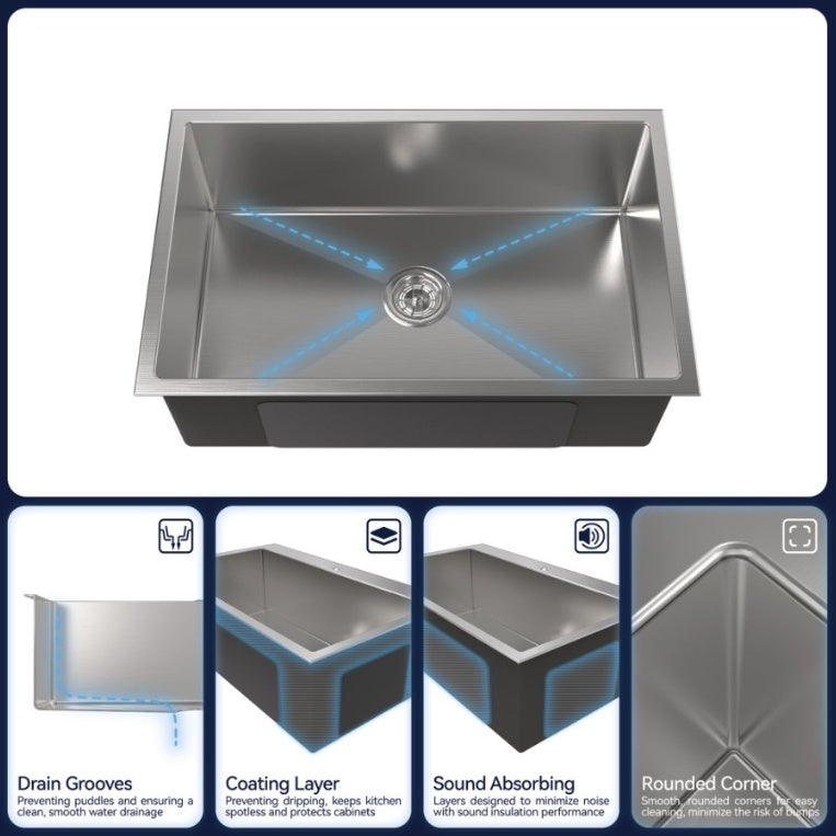 Kitchen Sink 30x19 Multifunctional Undermount Workstation Kitchen Sink S304 Stainless Steel Handmade Modern Single Bowl Kitchen Sink