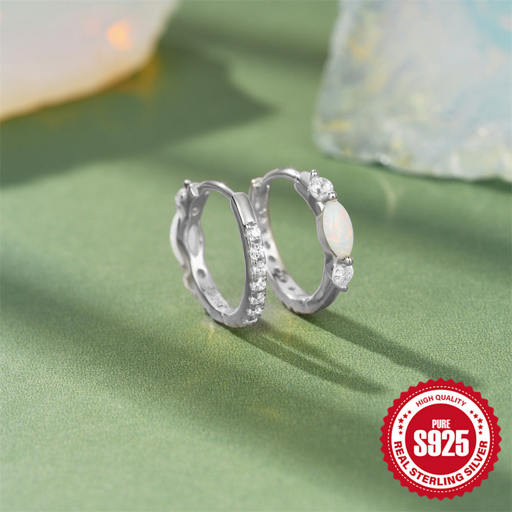 Korean Style Light Luxury Minority All-match S925 Sterling Silver Round Micro Inlaid Zircon Opal