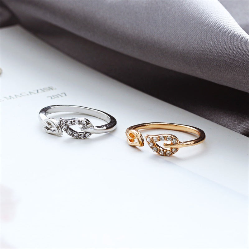 Leaf Rhinestone Peach Heart Adjustable Joint Ring