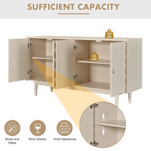 TREXM Modern 4-Door Sideboard with Convex Door and 2 Silver Handles for Living Room, Dining Room, Kitchen (Almond)