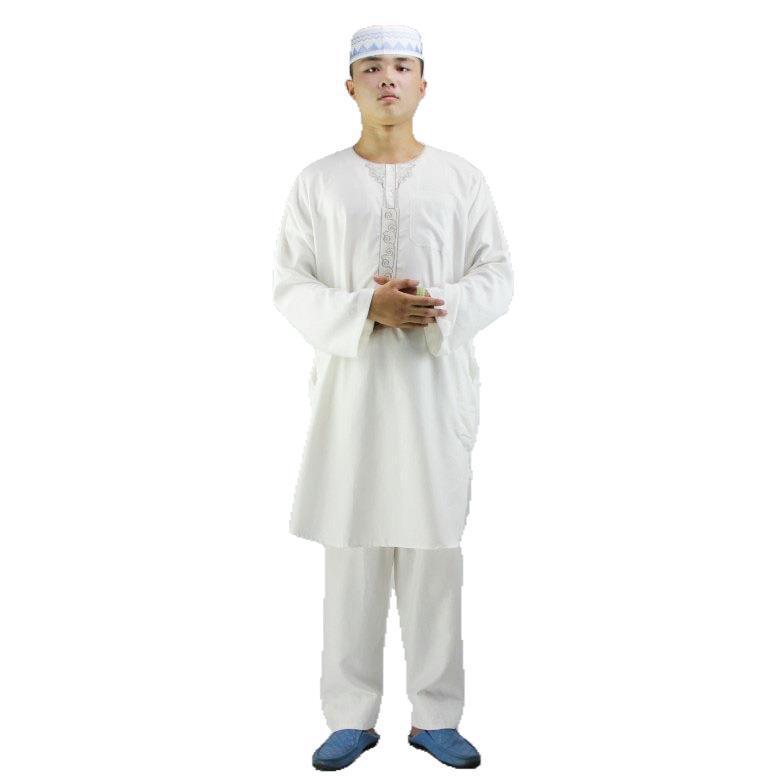 Muslim Men's New Cotton Hemp Embroidery Islamic Liturgy Embroidered Hui Men's Suit Two Piece Wholesale