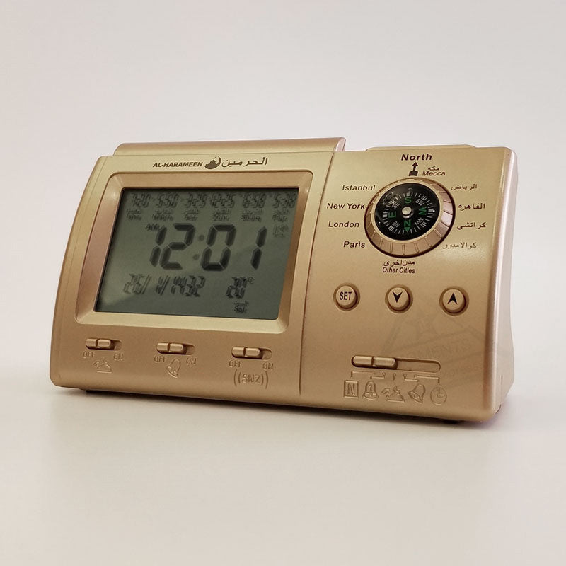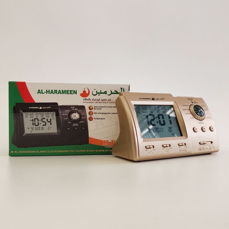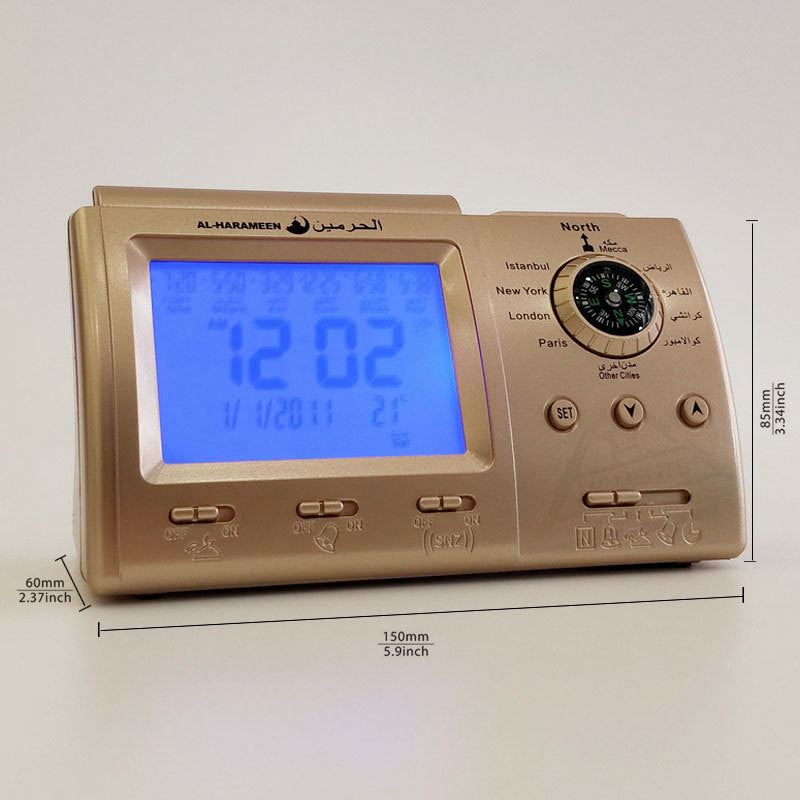 Product name: Azan Table Clock Type: Prayer Bell Function: Azan Time Function: Azan Prayer Alarm Gender: Unisex material: plastic En savoir plus