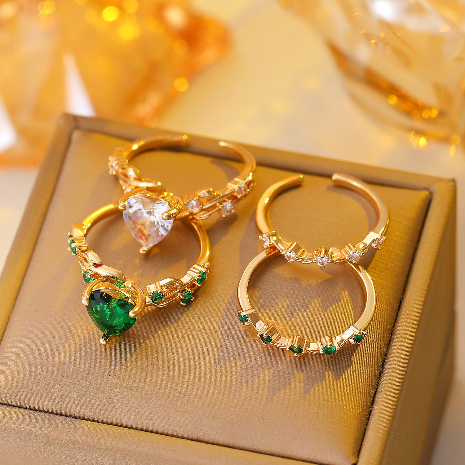 Open Heart All-match Copper Inlaid Zircon Ring Suit