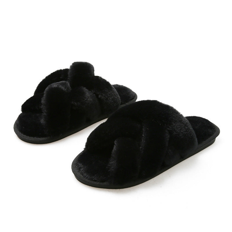 Open Toe Fluffy Slippers Women's Artificial Fur Couple Plush