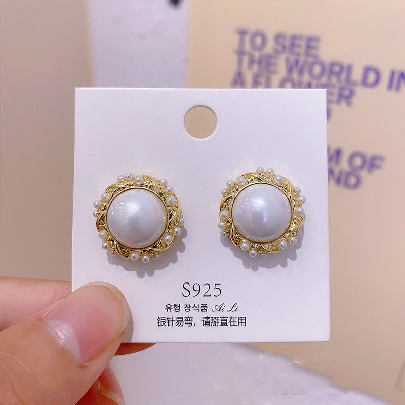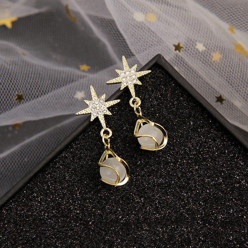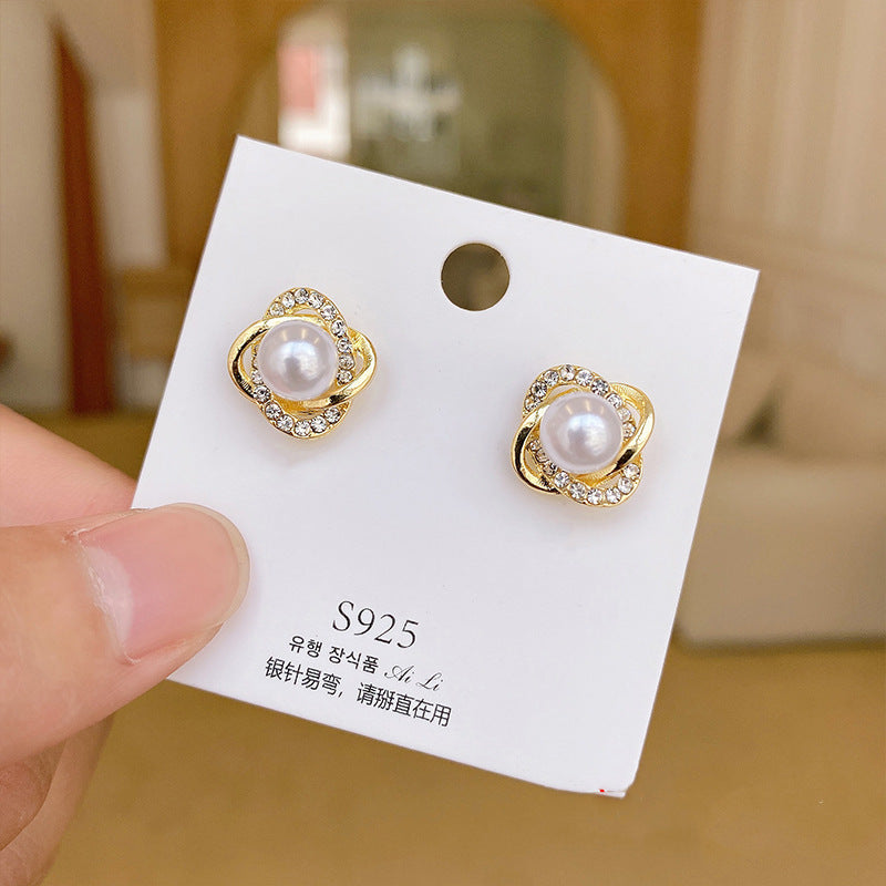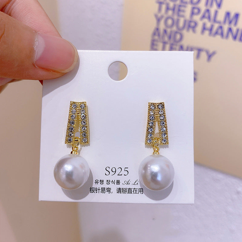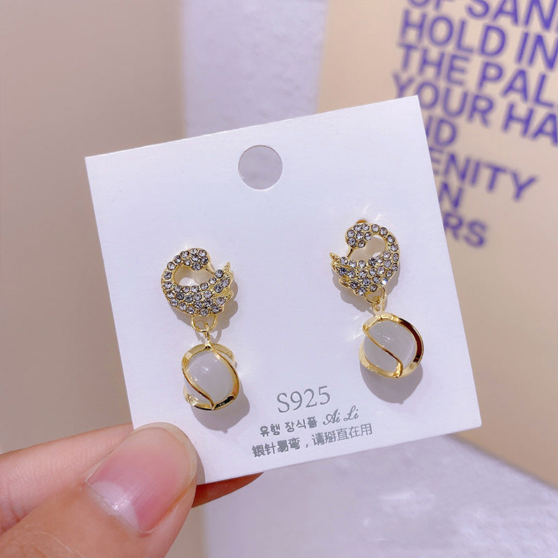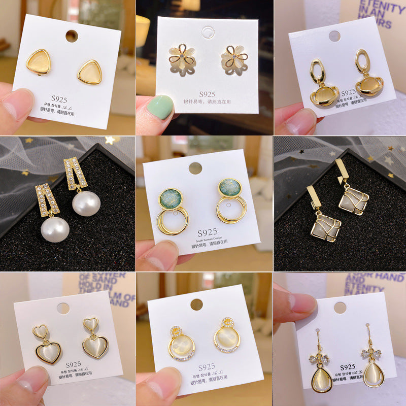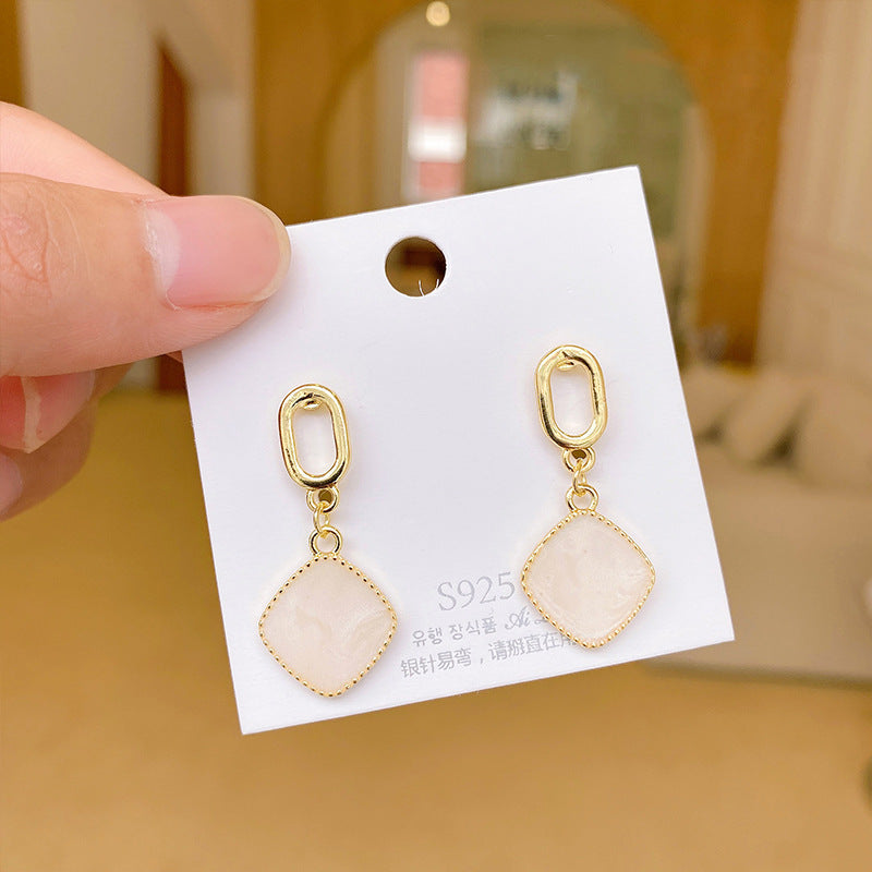 S925 Silver Needle Geometric Opal Temperament Diamond Earrings Simple