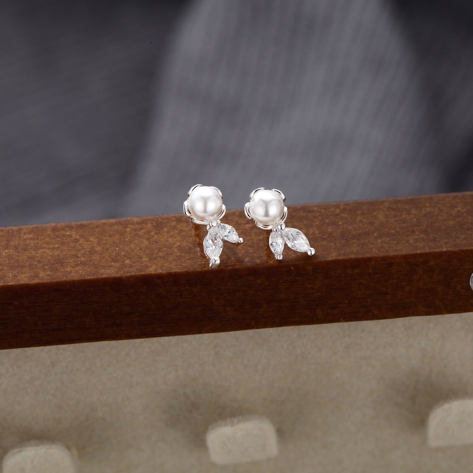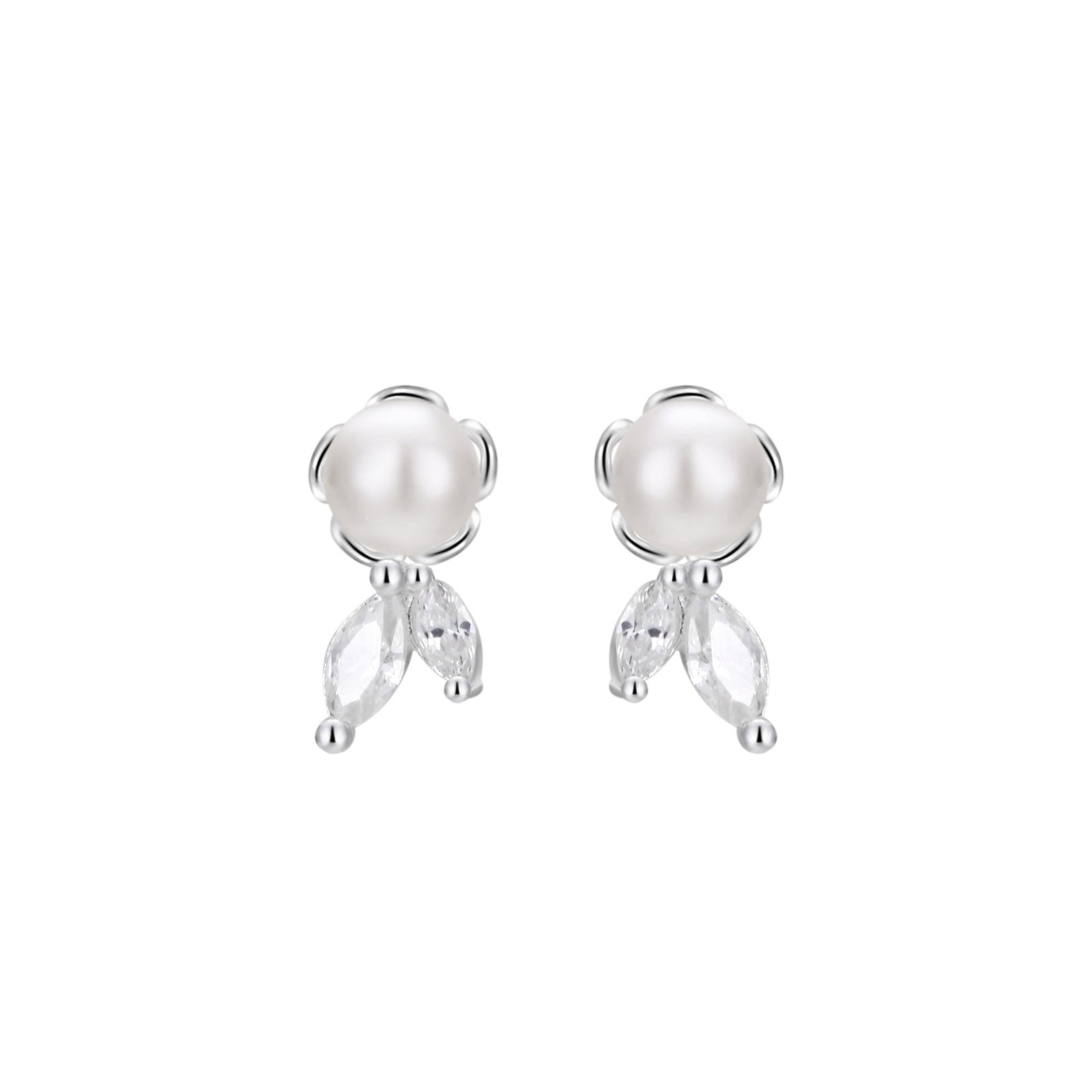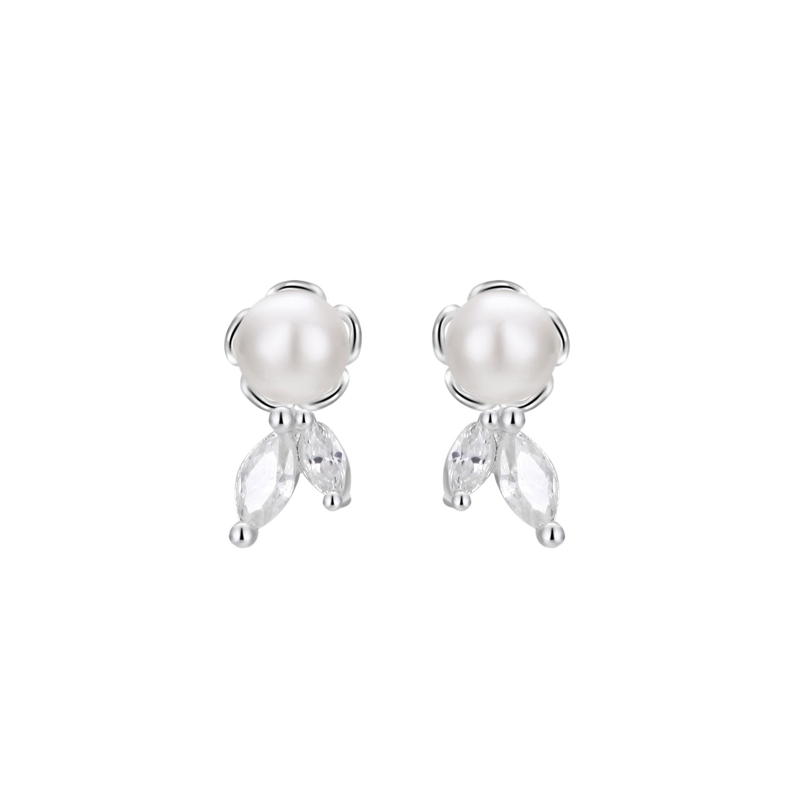 S999 Sterling Silver Pure Silver Stud Earrings Female Water Drop Ear-caring Shell Pearls