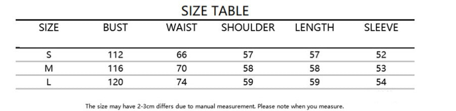 Fabric Name: Chemical Fiber Blended size Bust The waist Shoulder width Clothing length Sleeve length S 112 66 57... En savoir plus