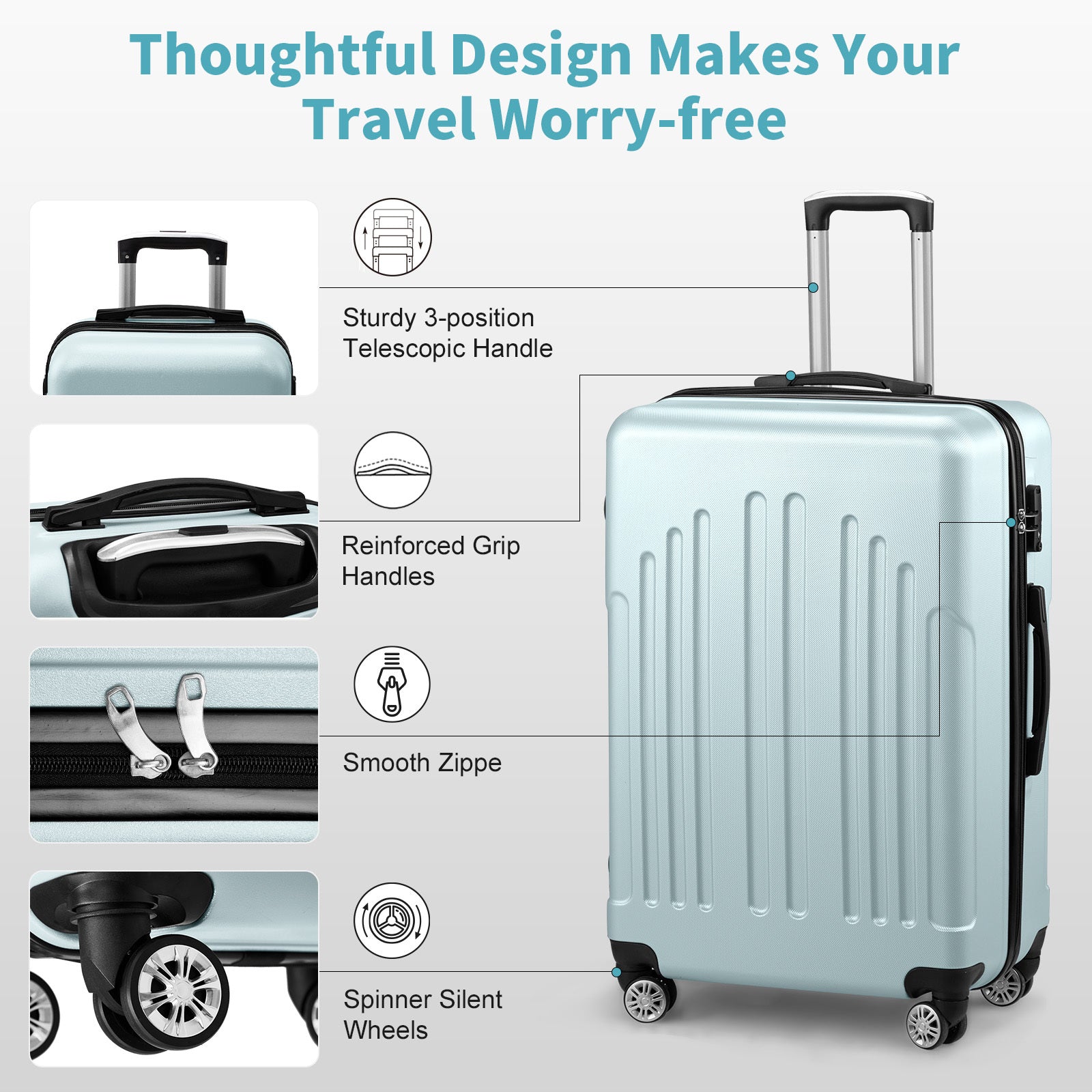 1. Sturdy Materials: The luggage setis made of ABS+PC hardshell material. It's durable, lightweight, and has a full glossy textured finish. It resists compression, scratches, and water. It's also lightweight and easy to clean, making it a practical choice for all your travel needs