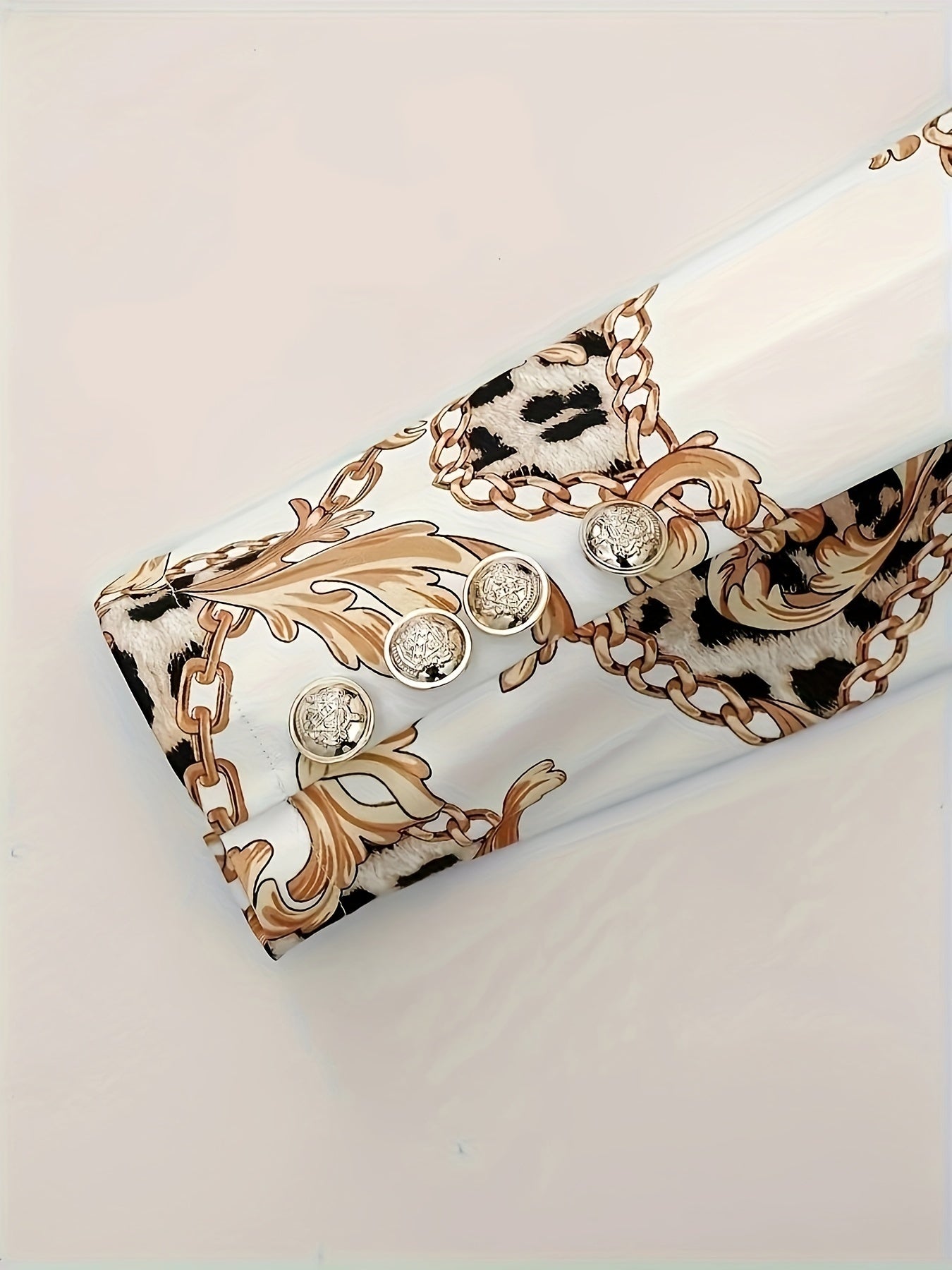 Two Piece Lapel Blazer Set Geometric Print Micro Elastic Fake Buttons Casual Fabric Outfit For Spring Fall Polyester Womens Clothing Amazon Does Not Sell
