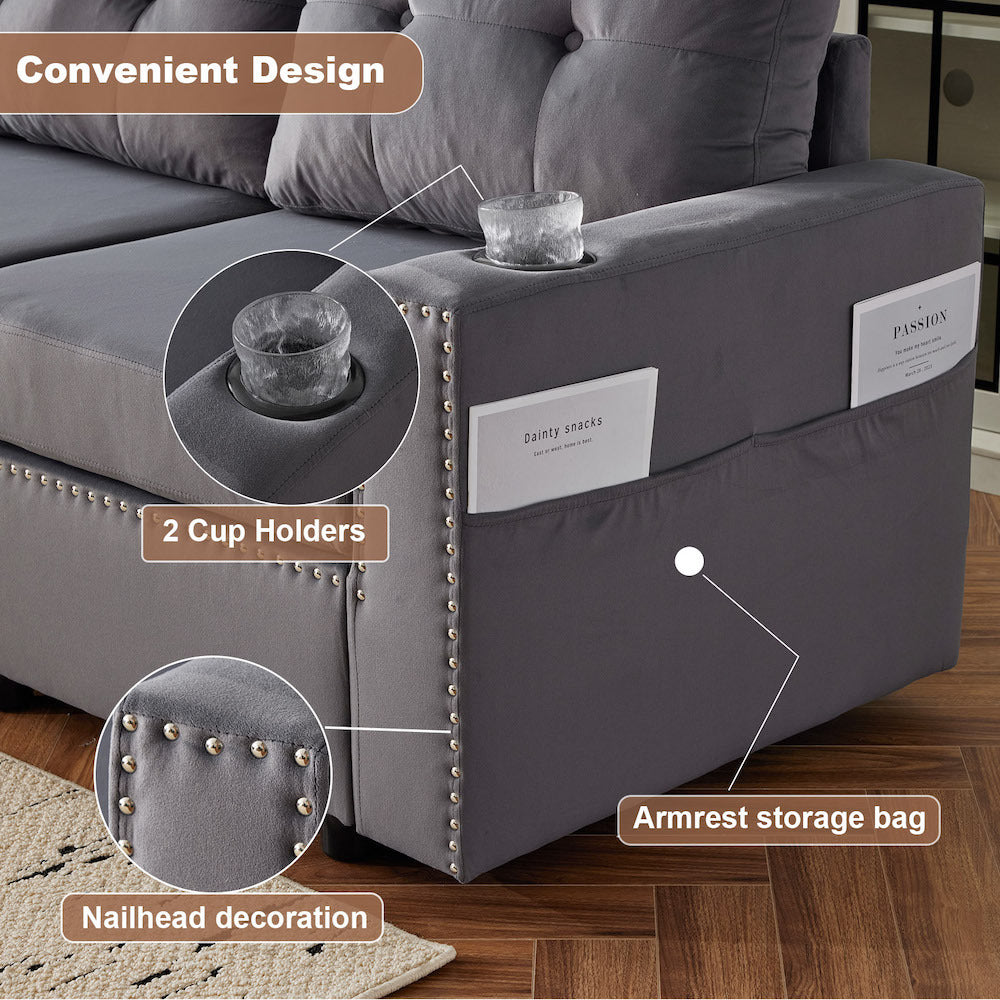 Velvet Modular Combination Sofa With Storage, Living Room Combination Sleeper Sofa