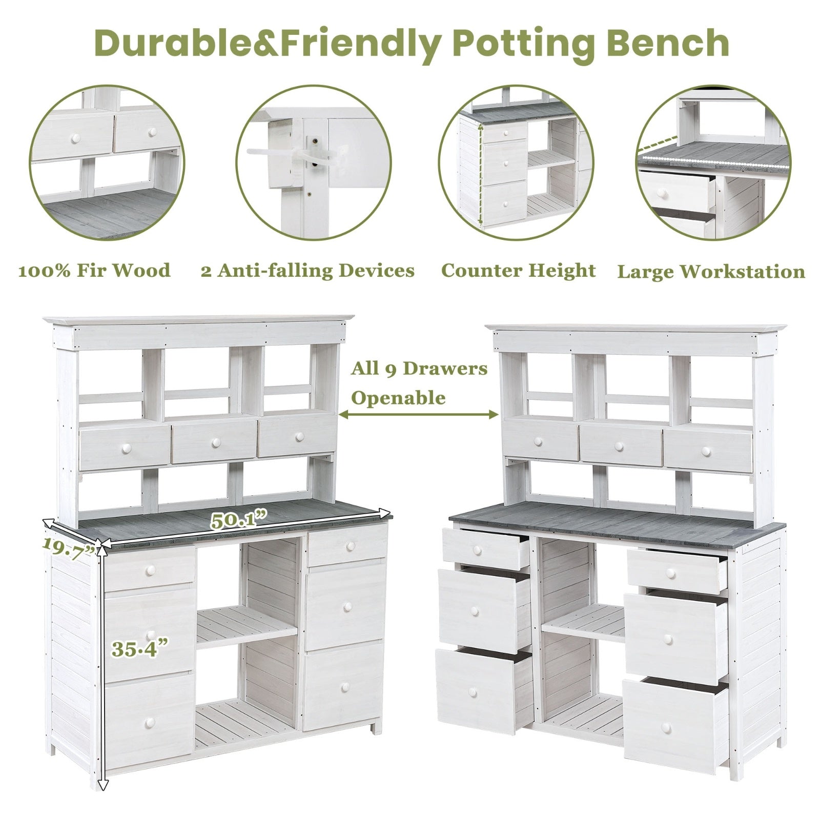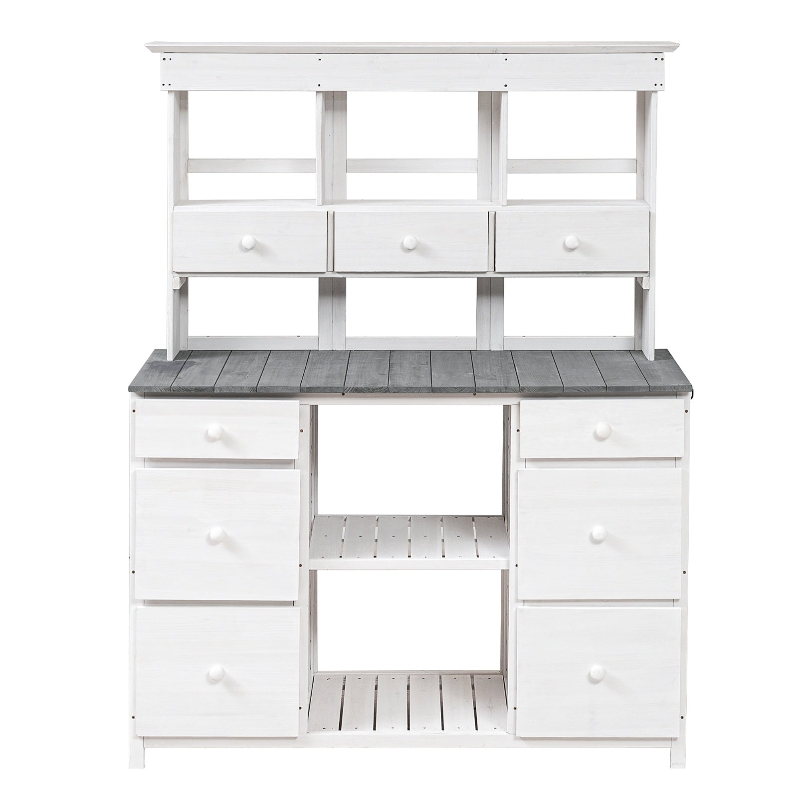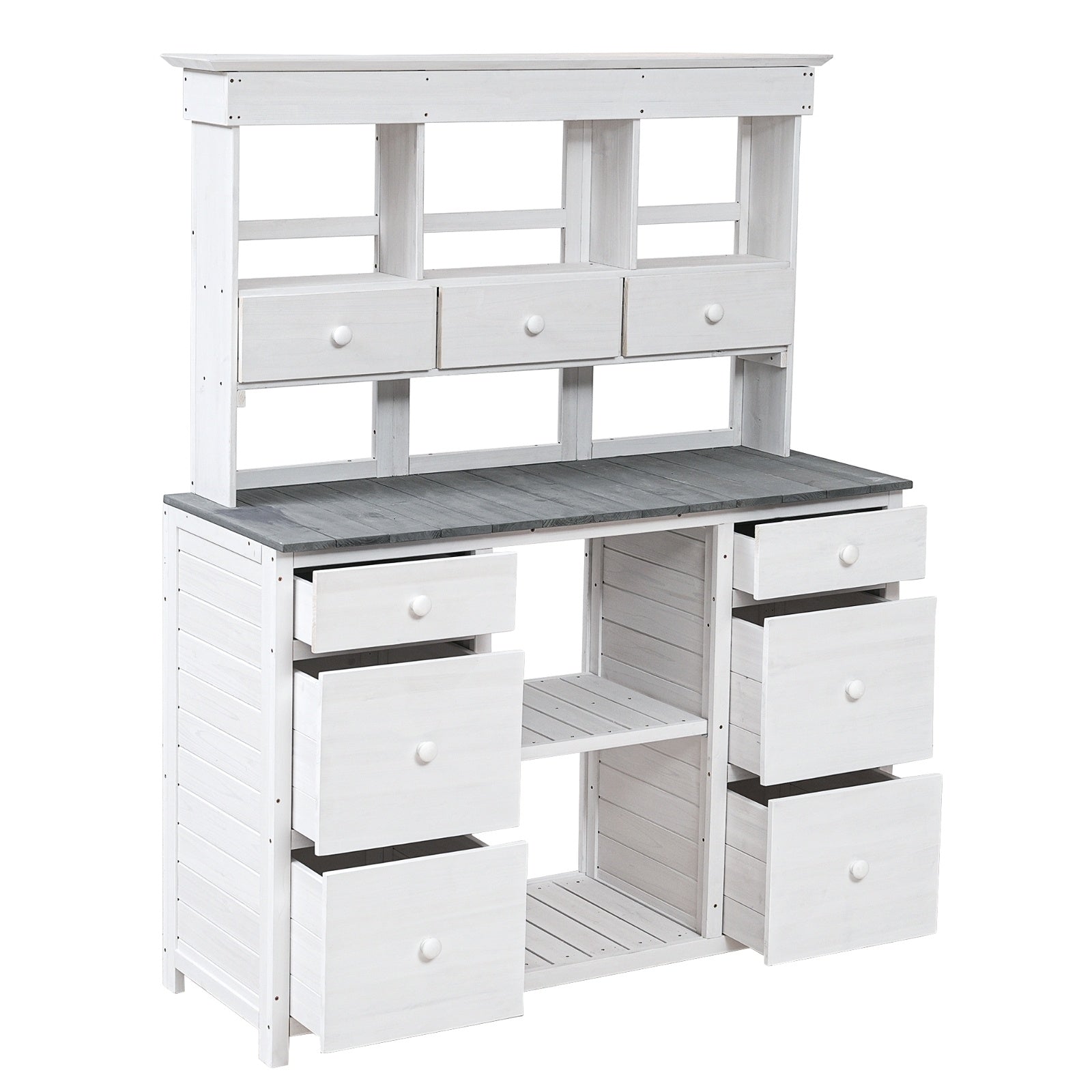 Video Provided TOPMAX Garden Potting Bench Table, Rustic And Sleek Design With Multiple Drawers An