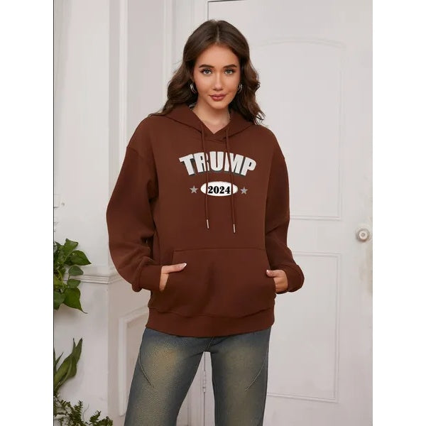 Women Basic Sweatshirt Casual Hooded Sweatshirt Autumn Winter Padded Long Sleeve Trump Alphabet 2024 Portrait Printed Top Oversize